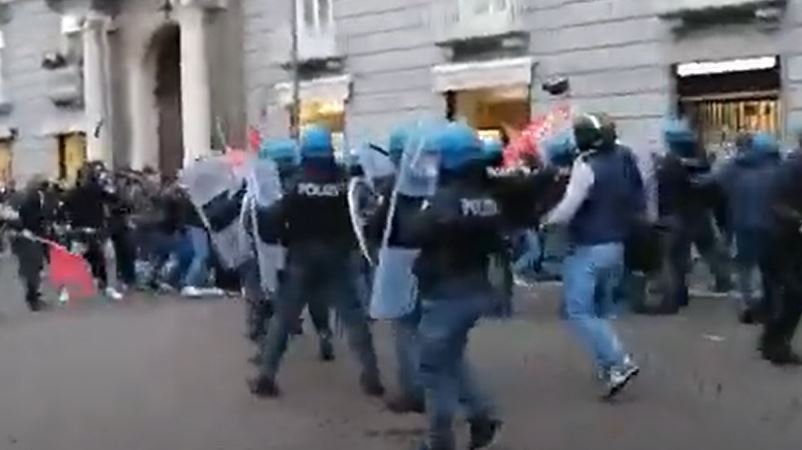 Uova con vernice rossa sono state lanciate contro la sede di Confindustria Napoli, in piazza dei Martiri, nel corso di una manifestazione di Centri sociali, Cobas, e Sindacato lavoratori in lotta. I manifestanti, un centinaio, fronteggiati da un cordone di poliziotti del reparto Mobile, hanno acceso fumogeni. In piazza anche un gruppetto di “Antifa” tedeschi, con una bandiera. La Polizia è poi intervenuta per disperderli quando si stavano dirigendo in corteo verso la Regione. Tre bombe carta e bottiglie contro gli agenti, poi nuovi disordini in piazza Amedeo.