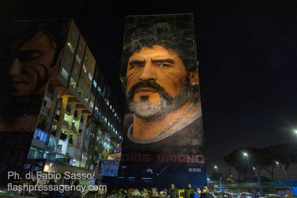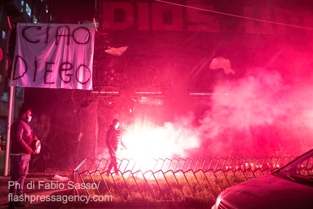 A Napoli sono proseguiti per gran parte della notte e continuano, anche questa mattina, gli omaggi a Diego Armando Maradona. In tanti si sono recati sotto lo stadio San Paolo e ai Quartieri Spagnoli dove, alla fine degli anni ’80, fu realizzato un enorme murales in via Emanuele De Deo. La struttura sportiva di Fuorigrotta è diventata meta di una sorta di pellegrinaggio laico: sciarpe, bandiere azzurre, ma anche fiori, lumini, candele e striscioni che inneggiano al Pibe de Oro. Tanti i tifosi in lacrime, uomini e donne di ogni età che hanno deciso di ricordare le gesta calcistiche di Maradona, per sette anni l’idolo sportivo della città.