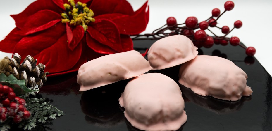 Pochi ingredienti, di facile preparazione, si presentano come paste dalla forma più o meno ovale, ricoperte da glassa rosa di zucchero e farcitura di mandorle, canditi misti e confettura di albicocche, come mostra la foto realizzata da Renato Aiello, all’interno del laboratorio della pasticceria Seccia, al civico 66 di via della Concordia, nel cuore dei Quartieri Spagnoli, dove il maestro Franco Seccia si sta preparando ad un Natale, al passo con i tempi, come insegnano i recenti bignè dedicati a Diego Armando Maradona, ma sempre nel rispetto della tradizione. Motivo per il quale i “divino amore” troveranno sempre un posto di riguardo.