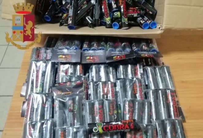 Ieri sera gli agenti del Commissariato Secondigliano, con il supporto del Nucleo Artificieri dell’Ufficio Prevenzione Generale, hanno effettuato un controllo presso l’abitazione di un uomo in via Mianella dove hanno rinvenuto, occultata in uno stanzino, una confezione di cartone contenente 179 petardi “Super cobra 6” per un peso complessivo di circa 10 kg.