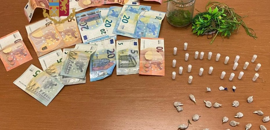 I poliziotti hanno raggiunto e bloccato lo spacciatore trovandolo in possesso di due involucri di eroina e di 325 euro; inoltre, hanno rinvenuto, occultato e mimetizzato nel manto erboso, un barattolo di vetro in cui era racchiuso un calzino con 17 involucri e 5 cilindretti della stessa sostanza per un peso complessivo di circa 12,2 grammi e 19 cilindretti e 3 involucri contenenti 17 grammi circa di cocaina.