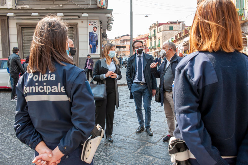 La visita si è svolta proprio nell’area del centro storico del quartiere, incrocio corso Italia – via Dante, dove da settimane è stata predisposta una postazione fissa di polizia locale per il contrasto all’ambulantato abusivo, alle occupazioni di suolo improprie e per garantire legalità nelle strade.