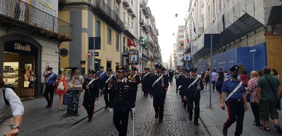 Il concerto itinerante si è concluso in bellezza nella Galleria Umberto I dove le note dell’Arma dei Carabinieri si sono intrecciate a quelle suonate dalla Fanfara della Brigata Bersaglieri “Garibaldi” di Caserta dell’Esercito. Una cornice magica culminata negli applausi divertiti della cittadinanza.