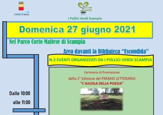 Doppia iniziativa domani, domenica 27 giugno, de “I Pollici Verdi”, l’associazione di volontari che ha riqualificato e ogni giorno si prende cura del parco Corto Maltese, a Scampia.