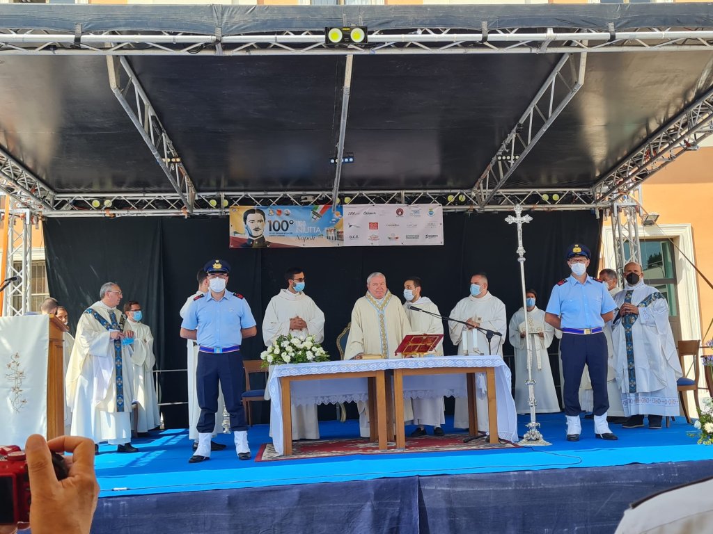 La cerimonia è stata aperta da un alzabandiera solenne presieduta dal Comandante Colonnello Pilota Vittorio Vicari a cui è seguita la deposizione di una corona d’alloro in onore di tutti i caduti e lo scoprimento di una targa commemorativa per il Centenario alla presenza dell’Assessore Alessandra Clemente, del Prefetto di Napoli dott. Marco Valentini e di SE Monsignor Santo Marcianò, Ordinario Militare per l’Italia, il quale successivamente ha celebrato la Santa Messa in un’aerea dedicata.