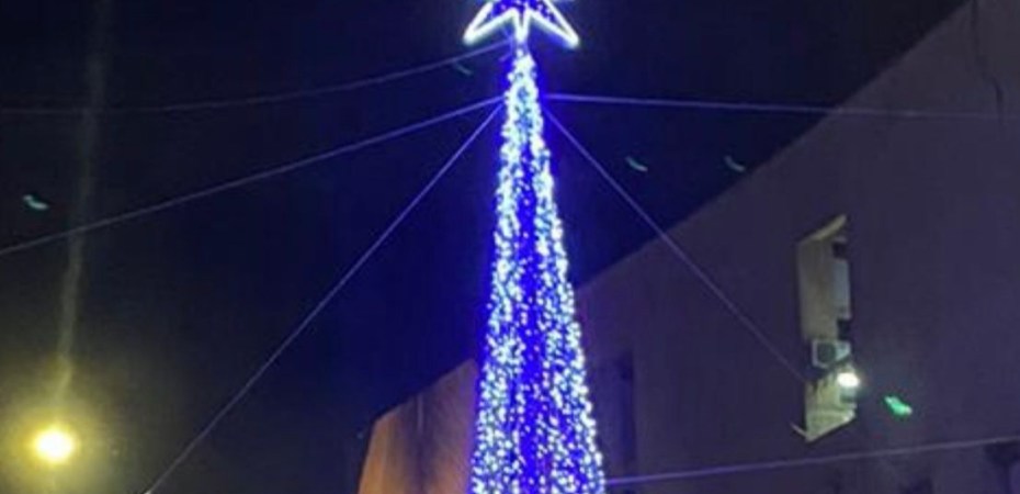 Un albero di Natale fa luce in piazza Guarino, cuore di San Pietro a Patierno, a pochi metri dal murale dedicato da Jorit a Nino D’Angelo.