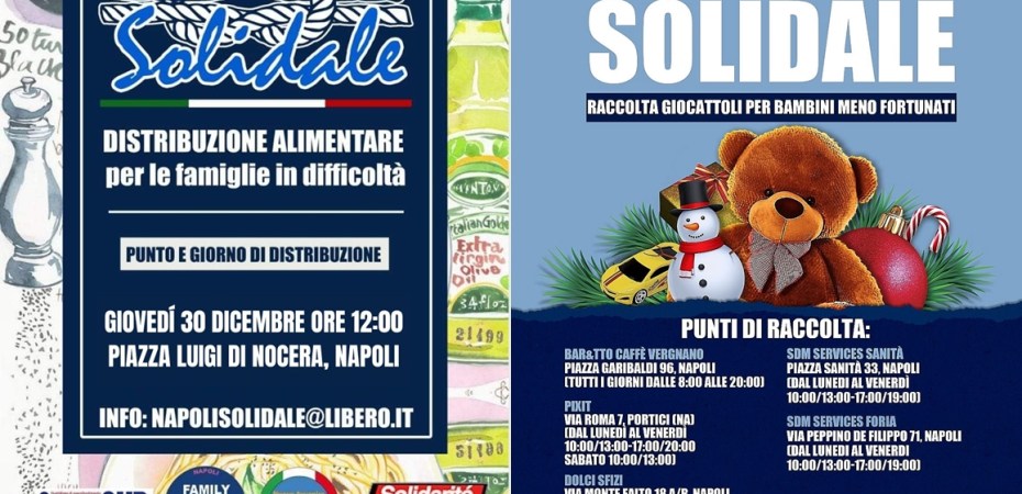 Altro appuntamento con la solidarietà domani 30 dicembre in piazza Di Nocera, cuore del centro storico di Secondigliano, alle 12, con la distribuzione di generi alimentari alle famiglie in difficoltà.
