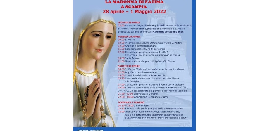 Scampia si prepara a vivere un importante momento di fede in occasione dell’inizio del mese mariano, con l’arrivo della statua della Madonna di Fatima e un ricco programma di celebrazioni organizzate dalla Parrocchia Santa Maria Maddalena.