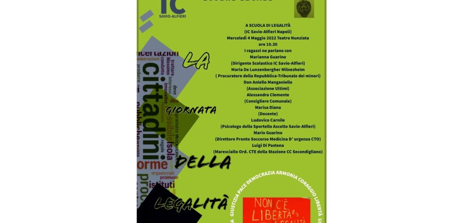 Continua il percorso dell’IC Savio – Alfieri di Secondigliano per la diffusione della cultura della legalità tra i ragazzi. Nuovo appuntamento presso l’istituto, guidato dalla professoressa Marianna Guarino, mercoledì 4 maggio, alle 10:30, presso la sala teatro Cosimo Nunziata, di recente inaugurata.