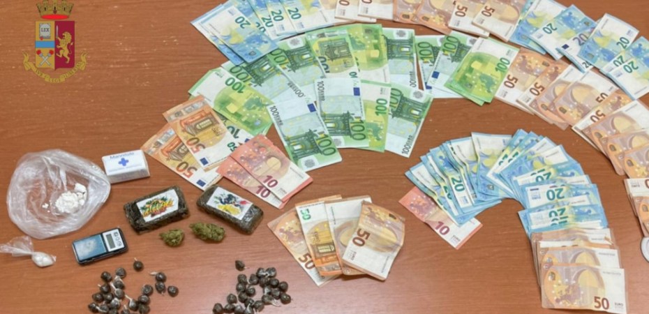 Inoltre, i poliziotti, giunti presso l’abitazione dell’uomo in via Galimberti, hanno sorpreso la moglie mentre stava lanciando dalla finestra dell’appartamento due buste contenenti 2 panetti di hashish del peso di 189 grammi, 2 bustine con 23 involucri di hashish del peso complessivo di 71,30 grammi e un involucro con 6,20 grammi di cocaina; mentre, all’interno della loro abitazione, è stata trovata una bustina contenente 4,70 grammi di marijuana, una confezione di mannitolo (sostanza utilizzata per il taglio della droga), un bilancino di precisione e 4270 euro.