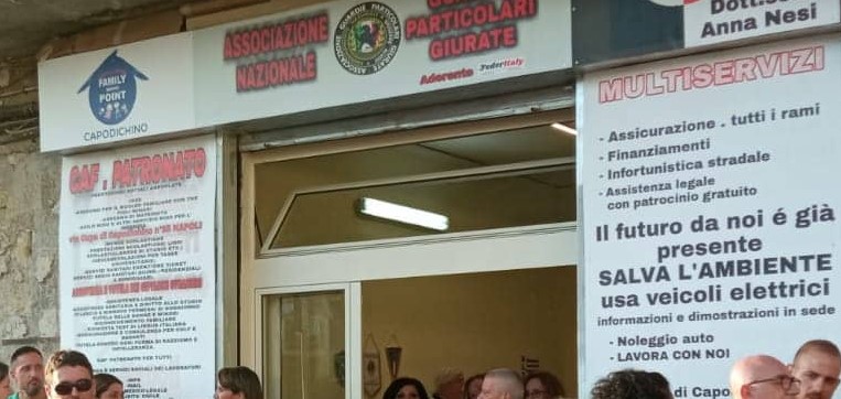 Taglio del nastro ieri pomeriggio, al civico 85 di via Cupa Capodichino a Miano, per la sede dell’associazione Nazionale Guardie Giurate, dove saranno garantiti servizi di Caf e Patronato, targato Family Point.
