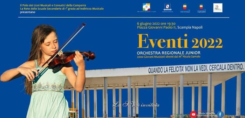 Lunedì 6 giugno, alle 19:30, piazza Giovanni Paolo II, nel cuore di Scampia, farà da cornice al concerto di 2mila giovani musicisti dell’ Orchestra Regionale Junior, diretta dal maestro Nicola Sarnale.