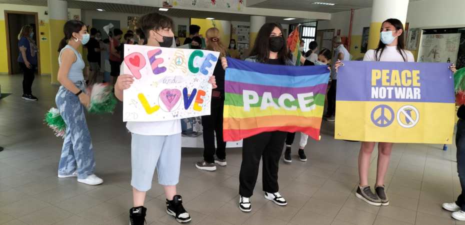 Noi diciamo no! No alla guerra tra l’Ucraina e la Russia ma anche a tutte le guerre del mondo, no alla violenza dalla più piccola alla più grande ed in una calda giornata di giugno non abbiamo esitato a marciare e fare un flashmob con i professori e le professoresse per far sentire la nostra giovane voce, questo è stato il nostro piccolo contributo di solidarietà verso il popolo ucraino che ha perso e continua a perdere tante vite umane, senza tener conto se si tratta di un bambino o di un soldato.
