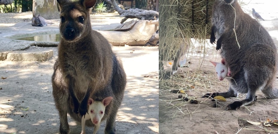 E’ una rarità e una gioia da condividere con il pubblico dello Zoo di Napoli la nascita di un marsupiale albino. Un cucciolo di Wallaby (Macropus rufogriseus) che i keeper dello Zoo hanno subito chiamato Kristal e che si fa notare per il suo manto bianco candido quando di tanto in tanto sporge la testa fuori dal marsupio della mamma. Qui rimarrà a proteggersi e a crescere ancora per un pò, ma man mano uscirà allo scoperto sempre di più. Ha totale assenza di pigmento in quanto caratterizzato da una alterazione genetica che in natura gli sarebbe fatale, perchè renderebbe il cucciolo più visibile ed esposto ai pericoli non potendosi nascondere dai predatori. La sua specie infatti di origine Australiana e diffusa anche in Tasmania ha colori simili alla terra e il collo rosso. Il termine “wallaby” indica la specie piú piccola della famiglia dei canguri, infatti é alto circa 50 cm, la lunghezza corporea può raggiungere 1 m e si caratterizza per la coda muscolosa di circa 70 cm. Gli arti posteriori più grandi, ne determinano la tipica andatura a salti, rispetto a quelli anteriori, utilizzati invece per afferrare il cibo.