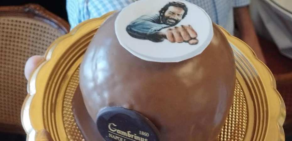Al termine dell’iniziativa al Gambrinus è stato presentato il dolce “bomber” dedicato proprio a Bud Spencer che è stato distribuito gratuitamente.