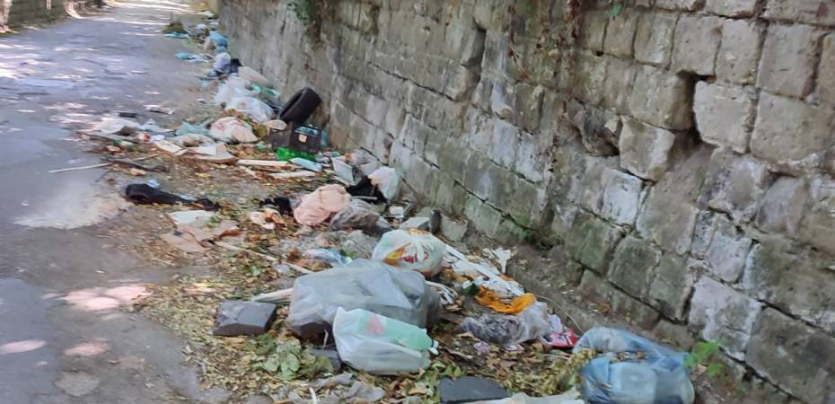 Lungo il muro di cinta della strada da cui penzola la vegetazione incolta troviamo: targhe di auto, sacchetti maleodoranti, copertoni, fogliame, materiale edilizio di risulta, legname, indumenti, masserizie, carcasse di elettrodomestici e perfino servizi igienici usati
