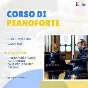 Con grande entusiasmo, dati gli ottimi risultati già ottenuti, dal 6 ottobre partirà il corso di chitarra con il maestro Maurizio Grandelli e si ripeterà, con cadenza settimanale ogni giovedì, dalle ore 17 alle ore 18. Contemporaneamente, comincerà anche il corso di pianoforte digitale con il maestro Davide Zito e si terrà sempre di giovedì, ma dalle ore 18 alle ore 20.