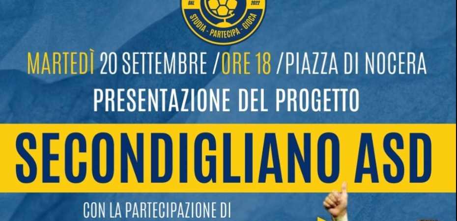 Domani, martedì 20 settembre alle ore 18, in piazza Luigi Di Nocer,a verrà presentato il progetto della Associazione sportiva dilettantistica Secondigliano (Secondigliano ASD).