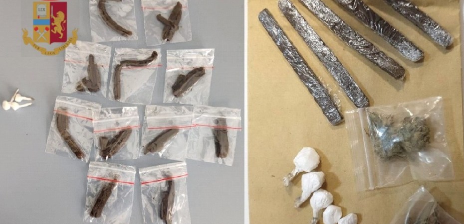 Poco dopo, gli operatori hanno effettuato un altro controllo in via Villari presso l’abitazione di un uomo dove hanno rinvenuto 5 involucri con circa 1,3 grammi di cocaina, 5 stecche di hashish per circa 7,5 grammi e due bustine con circa 1,7 grammi di marijuana.