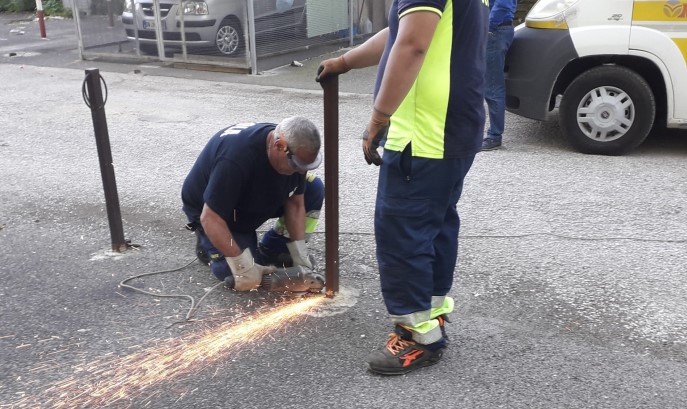 I caschi bianchi hanno provveduto a far rimuovere, oltre a diverse strutture in cemento, al momento trovate libere, ma palesemente adibite a cuccia per cani di taglia grande, 50 paletti abusivi installati da ignoti a delimitare porzioni di strada pubblica al fine di creare degli stalli di sosta recintati.