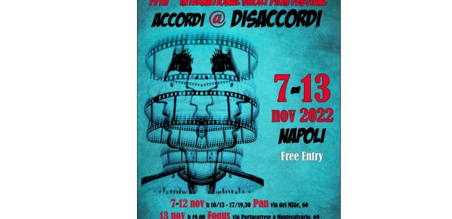 Dal 7 al 13 Novembre 2022 si terrà a Napoli la diciannovesima edizione di accordi @ DISACCORDI – Festival internazionale del cortometraggio diretta da Pietro Pizzimento e Fabio Gargano; festival organizzato dall’associazione Movies Event in collaborazione con il Comune di Napoli e con il contributo della Regione Campania tramite il fondo regionale per il cinema e l’audiovisivo.