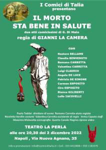 Si intitola “Il morto sta bene in salute” la commedia in due atti di Gaetano Di Maio, che la compagnia “I Comici di talia”, porterà in scena venerdì 2 dicembre, alle 20:30, al teatro La Perla ad Agnano, per la regia di Gianni La Camera.