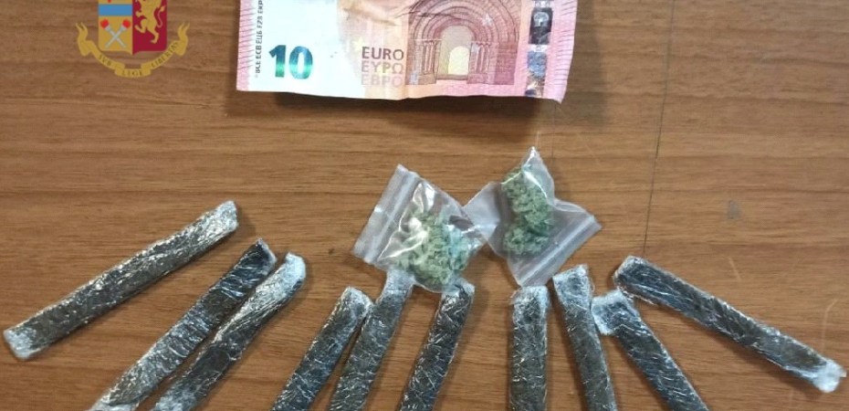 I poliziotti hanno raggiunto e bloccato lo spacciatore trovandolo in possesso di 10 euro, mentre nel vaso hanno rinvenuto 10 stecche di hashish del peso di circa 35 grammi circa e due bustine contenenti circa 2,3 grammi di marijuana.