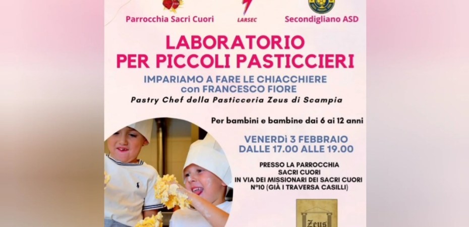 La parrocchia Sacri Cuori di Secondigliano apre le porte ad un laboratorio di pasticceria riservato a bambini dai 6 ai 12 anni.