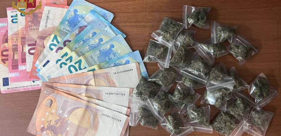 Gli operatori hanno bloccato lo spacciatore trovandolo in possesso di 390 euro mentre hanno rinvenuto nella busta 24 bustine contenenti circa 32 grammi di marijuana.