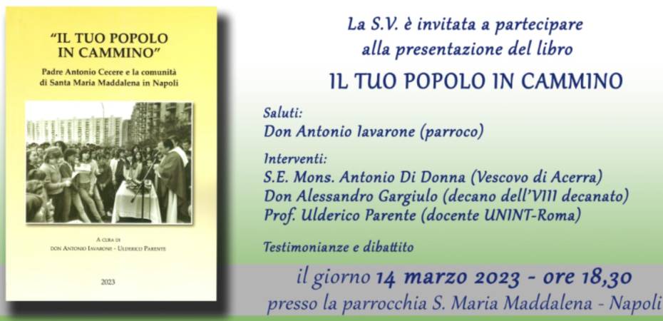 Si intitola “Il tuo popolo in cammino”, il libro scritto da don Antonio Iavarone, parroco di Santa Maria Maddalena a Scampia e dal prof. Ulderico Parente, docente UNINT – Roma, che racconta la storia di padre Antonio Cecere e della comunità da lui fondata, Santa Maria Maddalena.