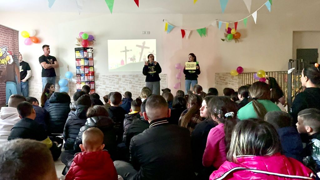 Gli EG Street, per l’evento del 4 aprile, hanno fittato un locale e con la collaborazione di un altro Team, Women With a Mission (Donne con una Missione) proveniente da diverse parti d’Italia hanno lavorato per accogliere più di 150 persone tra bambini e genitori in un programma pasquale che li ha coinvolti in giochi, divertimento e l’importante messaggio della Pasqua: la morte e la resurrezione di Gesù, trattando il delicato argomento del perdono, imparare a perdonare chi ti ferisce, come Gesù ha fatto con chi lo ha trafitto sulla croce, utilizzando storie di vita vissuta di alcuni membri del Team.