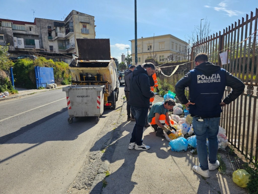 Questa mattina in via Vecchia Comunale di Miano si è tenuto un intervento congiunto tra la Polizia Municipale, Asia e la Presidenza della 7 Municipalità – nella persona del Vice Presidente Giuseppe Grazioso con delega all’Ambiente. Alcuni condomini della strada in questione abbandonavano sistematicamente i rifiuti sulla sede stradale creando delle vere e proprie discariche, impedendo perfino l’utilizzo del marciapiede. Grazie all’apertura dei sacchetti da parte di personale Asia in collaborazione con la Polizia Municipale è stato possibile multare alcuni residenti della zona mediante documentazione rinvenuta insieme ai rifiuti. Sono stati redatti anche verbali ed effettuata la rimozione di veicoli parcheggiati in divieto di sosta e sul marciapiede.