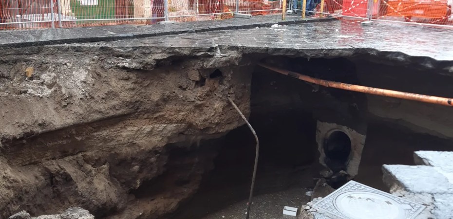 La voragine è risultata di circa 200 metri quadrati di superficie e otto metri di profondità, “con tranciamento dei sottoservizi fognari, idrici e condotta gas e cavi elettrici e telefonici sospesi”, secondo un sopralluogo effettuato in tarda mattinata dal Comune.
