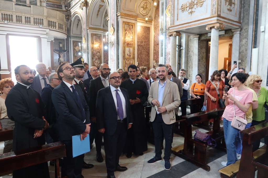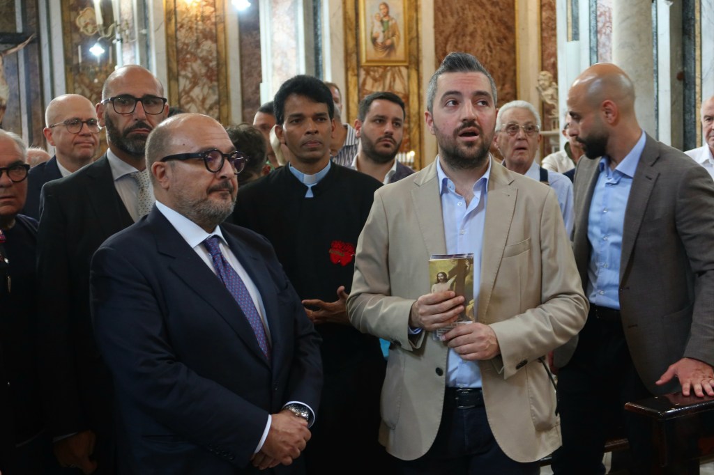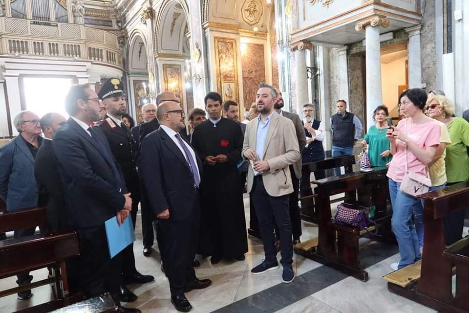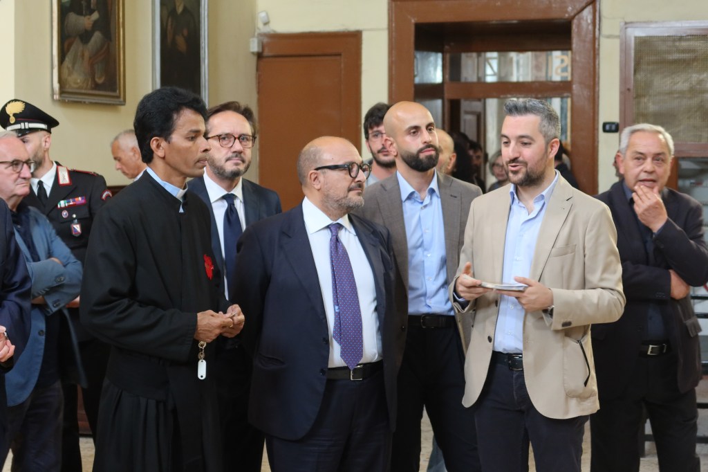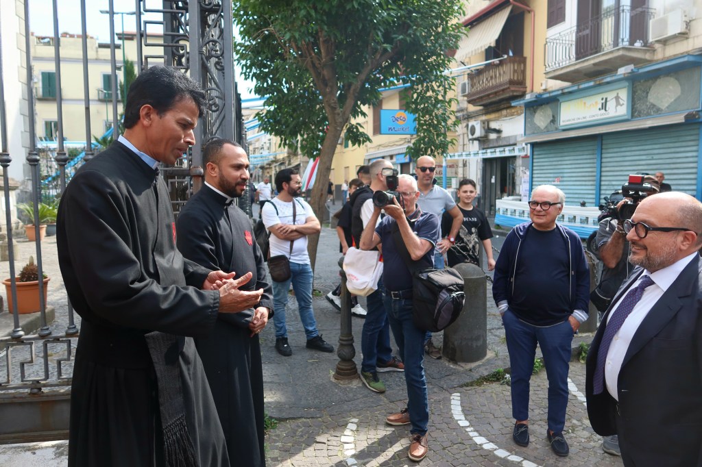 L’esponente del Governo Meloni è arrivato poco dopo le 16:30 alla parrocchia Santi Cosma e Damiano ed è stato accolto dal parroco P. Kiran Fernandes, dal presidente dell’associazione COSDAM Raffaele Siciliano, dal consigliere municipale Maurizio Moschetti (FDI), e da Dario Renzullo, responsabile area Nord FDI Napoli e ha visitato lo storico complesso monumentale, compresa la suggestiva cripta.