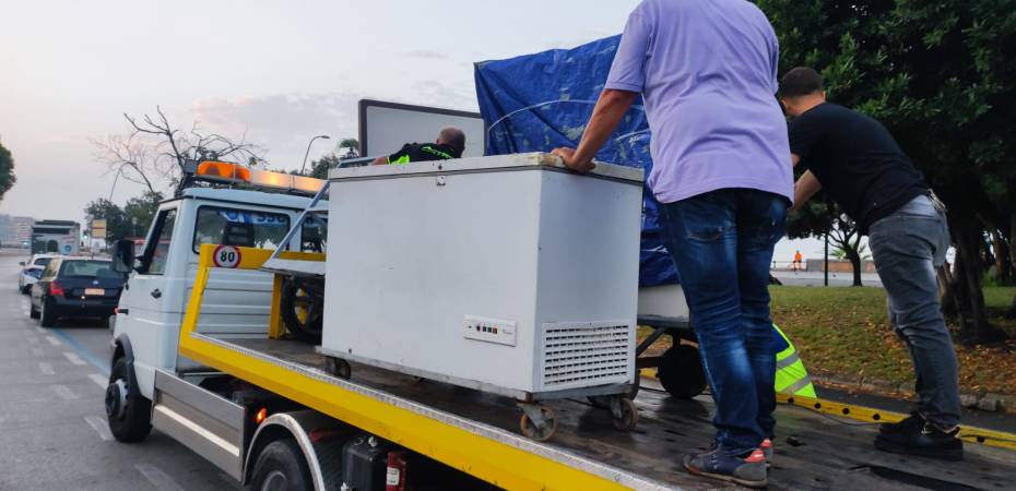 Alle prime ore dell’alba sono state poste in essere una serie di attività di vigilanza e repressione delle condotte illecite sul tratto di costa cittadino. All’interno dei giardinetti all’altezza della Rotonda Diaz, gli agenti della Polizia Locale, Unità operativa Chiaia e Nucleo Veicoli Abbandonati, insieme al personale della Guardia Costiera, hanno sequestrato circa 200 sdraio, lettini, ombrelloni e tavolini ed oltre 300 buste di snack e bibite in lattina.