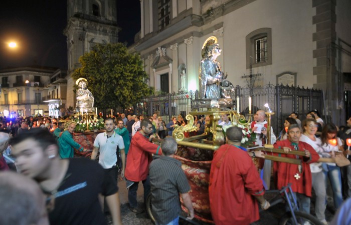 Questo l’itinerario della processione, con partenza alle 17:30: via Di Maro (già via Vittorio Emanuele III) – via Duca degli Abruzzi – via Monviso – via Monte San Michele – Parco Gianturco – via Montegrappa – via Regina Margherita – vico Lungo Ponte – via Dante – via Ciro Improta – via Tessitori di seta – via Gerusalemme Liberata – via Miracolo a Milano – via Misteri di Parigi – via Praga Magica – via Giardino dei Ciliegi – via del Camposanto – piazza Zanardelli – rientro in parrocchia.