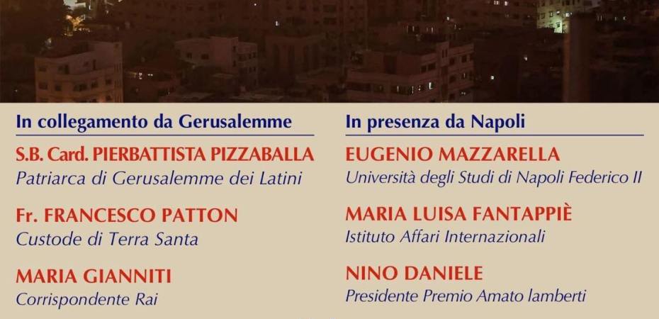 L’incontro, moderato dalla giornalista Elena Scarici, si aprirà con un collegamento diretto da Gerusalemme per ascoltare la voce del Cardinale Pierbattista Pizzaballa, Patriarca dei latini, di Fr. Francesco Patton, Custode di Terra Santa, e di Maria Gianniti, corrispondente della Rai.