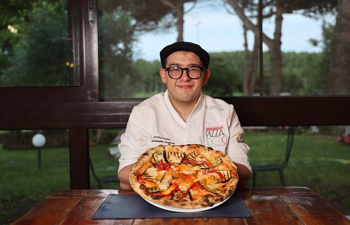 Il giovane maestro pizzaiolo preferisce la pizza classica a quella contemporanea, e predilige un impasto preparato con blend di farine 00 e 1 del Molino Caputo, con un doppio prefermento al 50 % lasciato a riposo 16 ore a una temperatura di 18 gradi, idratato al 72% e a cui vanno aggiunte altre 24 ore di lievitazione.