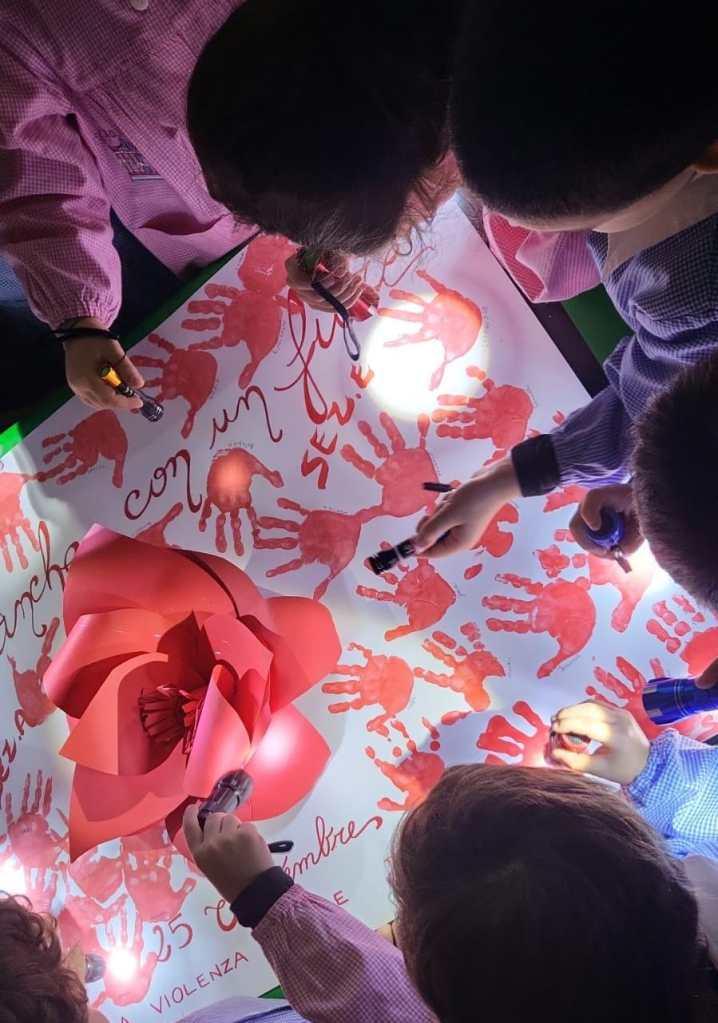 In particolare, attraverso i disegni impressi sul cartellone, su cui spiccano le manine e illuminati dalle torce portate dai bambini, la scuola ha inteso evidenziare il ruolo della luce, come simbolo che, partendo dai più piccoli, diventa strumento di memoria per tutte le donne vittime di violenza e nello stesso tempo, per dire no, rischiarando le coscienze, ad ogni forma di sopraffazione.