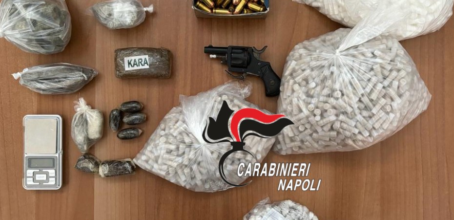 I controlli però non sono terminati con l’arresto del pusher e la denuncia al giovane complice ma si sono estesi in tutto il quartiere. Le perquisizioni hanno permesso di rinvenire a via Annamaria Ortese un’arma corta da sparo calibro 7,65 a tamburo da sei colpi pronta all’uso, 50 colpi calibro 45 R-P Auto Rim, 9 panetti di hashish per un peso complessivo di 200 grammi, un bilancino di precisione, una busta con all’interno 13 grammi di marijuana, 51 dosi della stessa sostanza e 19 stecche di hashish per altri 130 grammi di sostanza stupefacente. Armi e droga erano nascosti all’interno delle aree comuni dei lotti SC 2-SC 3. Sulla pistola saranno effettuati gli accertamenti balistici del caso per verificare un suo eventuale utilizzo in fatti di sangue o altri delitti.