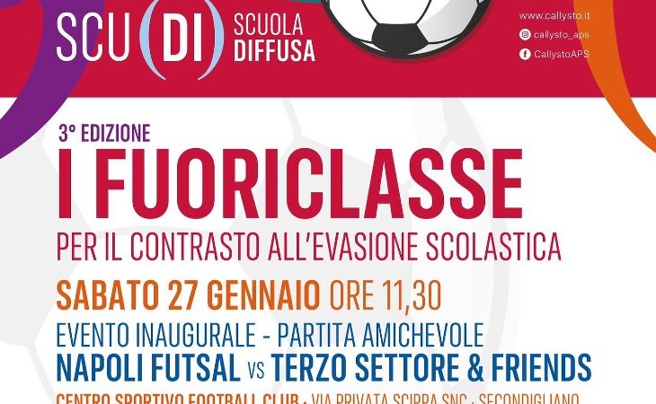 Si terrà sabato 27 gennaio a partire dalle ore 11.30 l’evento inaugurale della terza edizione del progetto “I fuoriclasse di Napoli”: il progetto punta a contrastare l’evasione scolastica attraverso l’organizzazione di attività e corsi indirizzati a giovani del quartiere e non solo che si trovano più a rischio di abbandono scolastico.