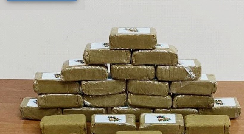 Pertanto, i poliziotti lo hanno bloccato ed hanno controllato il locale dove hanno rinvenuto 24 panetti e 15 stecche di hashish per un peso complessivo di circa 2,5 Kg e diverso materiale per il confezionamento.