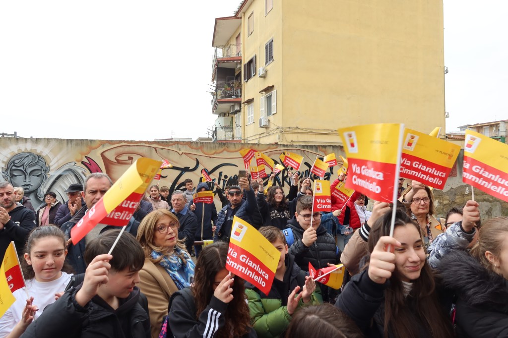 «Di fonte alla storia di Gianluca – ha affermato la sorella Susy Cimminiello, affiancata dai referenti di Libera e del Coordinamento vittime innocenti della camorra – non ci sono divisioni. È l’intera città che oggi abbraccia Gianluca dedicando a Secondigliano una strada ad un ragazzo perbene, un artista, un appassionato di tutto ciò che faceva, perché il suo sacrificio non sia mai dimenticato».