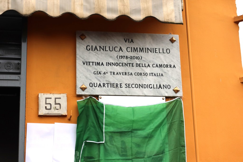 Da oggi Secondigliano ha una strada intitolata a Gianluca Cimminiello, il tatuatore di 31 anni, ucciso dalla camorra, nel suo studio, sulla Circumvallazione esterna, a Casavatore, il 2 febbraio 2010. Il giovane fu ammazzato per aver pubblicato sul suo profilo Facebook un fotomontaggio che lo ritraeva con un giocatore. Un post che – secondo quanto accertato dai magistrati – indispettì un tatuatore di Melito, che chiese al clan di riferimento di punire lo sgarro.