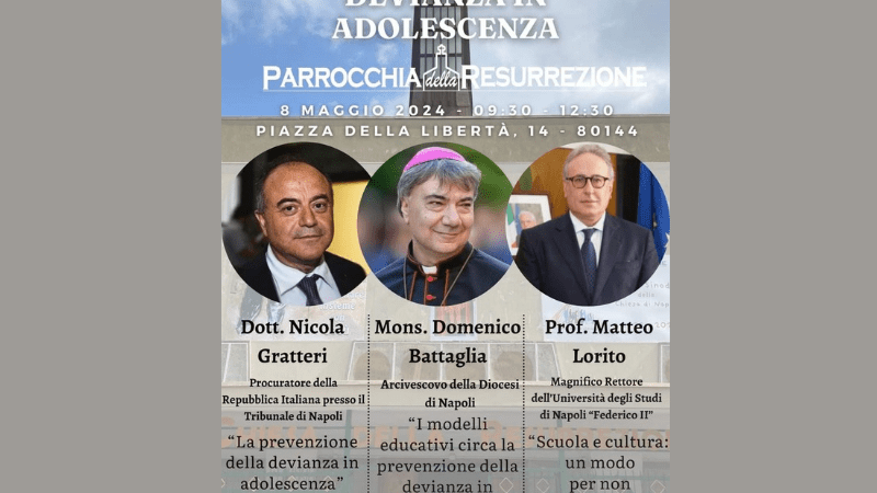 L’8 maggio, alle 9:30, gli studenti di alcune scuole superiori dell’area nord di Napoli incontreranno, presso la Parrocchia della Resurrezione di Scampia, autorevoli figure istituzionali per discutere di un tema cruciale come la prevenzione della devianza tra i giovani.
