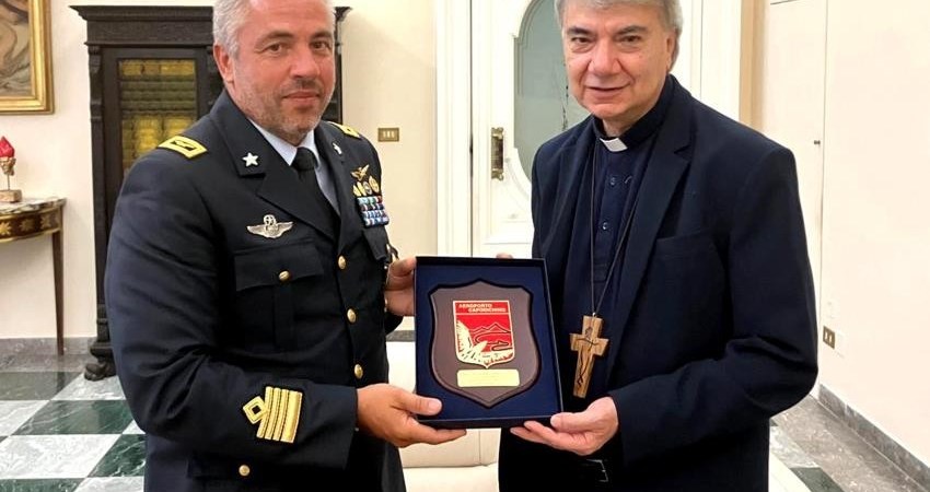 Martedì 30 luglio, l’Arcivescovo Metropolita di Napoli, Sua Eccellenza Monsignor Domenico Battaglia, ha accolto presso la sede dell’Arcidiocesi il Colonnello Pilota Massimo Maieron, recentemente insediato come nuovo Comandante del Comando Aeroporto “Ugo Niutta” di Napoli – Capodichino. All’incontro ha partecipato anche il Cappellano Militare di Capodichino Don Antonio Marchisano.