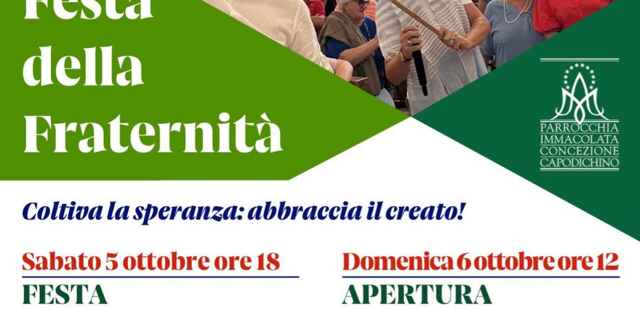 Sabato 5 ottobre, a partire dalle ore 18, la comunità parrocchiale dell’Immacolata Concezione a Capodichino, guidata da monsignor Doriano Vincenzo De Luca, si riunirà per la “Festa della Fraternità”, un’iniziativa organizzata per dare inizio al nuovo anno pastorale con gioia e condivisione.