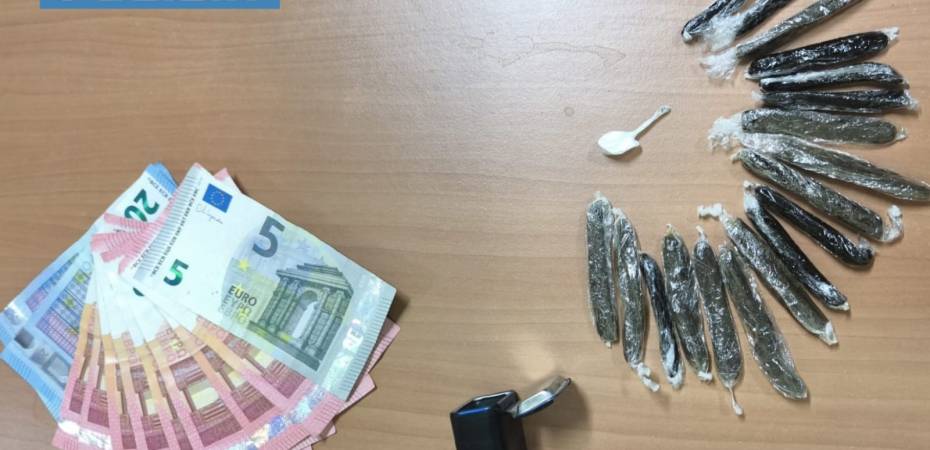 Dopo aver seguito il sospetto, i poliziotti lo hanno visto recarsi nei pressi di un furgone abbandonato, dove ha prelevato un oggetto dal passaruota. Gli agenti sono quindi entrati in azione, bloccando il giovane. Durante la perquisizione, sono stati trovati in suo possesso una stecca di hashish e 125 euro in banconote di vario taglio, ritenuti provento dell’attività illecita.