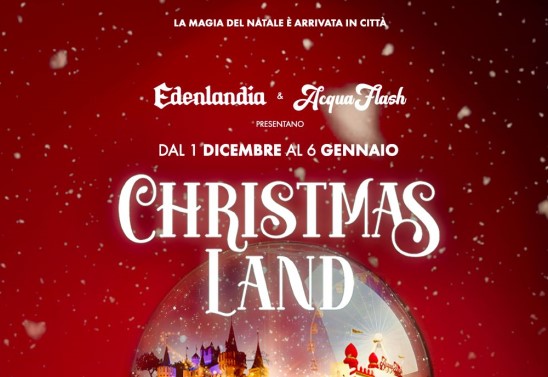Da domenica 1 dicembre a lunedì 6 gennaio, Edenlandia e AcquaFlash diventano Christmas Land, due magici villaggi natalizi, con ingresso gratuito dalle ore 10,30 alle 22,30. Lo annuncia Gianluca Vorzillo CEO di Tanit, società che gestisce i parchi di divertimento di Napoli e Licola.