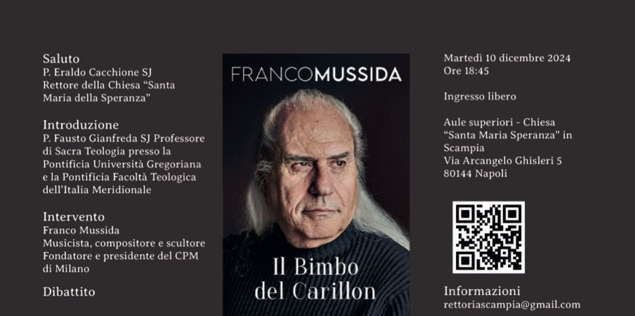 Il musicista, compositore e scultore, fondatore e presidente del CPM (Centro Professione Musica) di Milano, presenterà il suo ultimo libro autobiografico “Il Bimbo del Carillon” (Editore Salani) martedì 10 dicembre alle ore 18:45 presso l’aula della Chiesa “Santa Maria Speranza”.